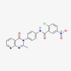 2-chloro-N-(4-{2-methyl-4-oxo-3H,4H-pyrido[2,3-d]pyrimidin-3-yl}phenyl)-5-nitrobenzamide is a complex organic compound with potential applications in various fields of scientific research. This compound features a unique structure that includes a pyrido[2,3-d]pyrimidine core, a nitrobenzamide group, and a chloro substituent, making it an interesting subject for chemical and biological studies.