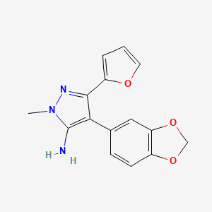 InChI=1S/C15H13N3O3/c1-18-15(16)13(14(17-18)11-3-2-6-19-11)9-4-5-10-12(7-9)21-8-20-10/h2-7H,8,16H2,1H3 | |