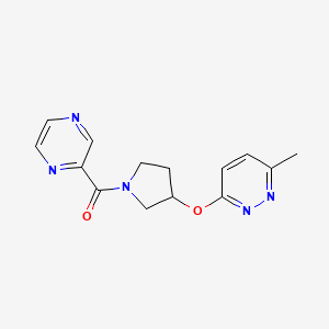 The compound (3-((6-Methylpyridazin-3-yl)oxy)pyrrolidin-1-yl)(pyrazin-2-yl)methanone is a complex organic molecule that features a pyridazinyl group, a pyrrolidinyl group, and a pyrazinyl group
