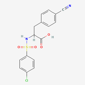 2-{[(4-Chlorophenyl)sulfonyl]amino}-3-(4-cyanophenyl)propanoic acid is a complex organic compound known for its unique chemical structure and properties. This compound features a sulfonamide group attached to a chlorophenyl ring and a cyanophenyl group, making it an interesting subject for various chemical and biological studies.