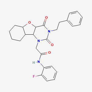 2-[2,4-dioxo-3-(2-phenylethyl)-4a,5a,6,7,8,9,9a,9b-octahydro-[1]benzofuro[3,2-d]pyrimidin-1-yl]-N-(2-fluorophenyl)acetamide | |