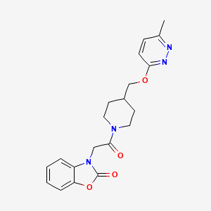 3-[2-(4-{[(6-Methylpyridazin-3-yl)oxy]methyl}piperidin-1-yl)-2-oxoethyl]-2,3-dihydro-1,3-benzoxazol-2-one is a complex organic compound that belongs to the class of benzoxazole derivatives This compound is characterized by its unique structure, which includes a benzoxazole ring, a piperidine ring, and a pyridazine moiety