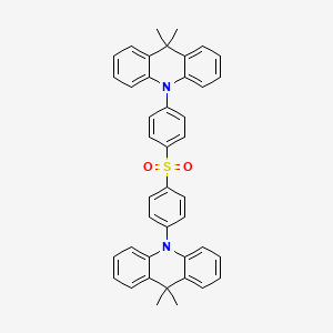 This compound is a donor-acceptor type molecule, a design principle that is fundamental to achieving TADF. The molecular structure consists of a central diphenylsulfone (DPS) core, which acts as the electron acceptor, flanked by two 9,9-dimethyl-9,10-dihydroacridine (B1200822) (DMAC) units that serve as the electron donors.[1][2][3] This spatial separation of the highest occupied molecular orbital (HOMO), localized on the DMAC moieties, and the lowest unoccupied molecular orbital (LUMO), centered on the DPS core, leads to a small singlet-triplet energy splitting (ΔEST), which is a prerequisite for efficient reverse intersystem crossing (RISC) and subsequent TADF.[2][3]