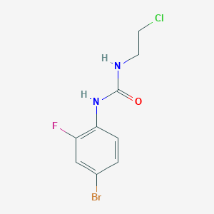 1-(4-Bromo-2-fluorophenyl)-3-(2-chloroethyl)urea is a synthetic compound that has garnered attention in medicinal chemistry due to its potential biological activities, particularly in the context of cancer treatment and other therapeutic applications. This article reviews the biological activity of this compound, supported by relevant data tables, case studies, and detailed research findings.