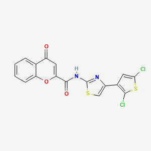 N-(4-(2,5-dichlorothiophen-3-yl)thiazol-2-yl)-4-oxo-4H-chromene-2-carboxamide: is a complex organic compound that has garnered attention in scientific research due to its unique structural features and potential applications. This compound is characterized by the presence of a chromene core, a thiazole ring, and a dichlorothiophene moiety, making it a subject of interest in various fields such as medicinal chemistry and material science.