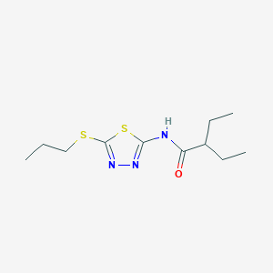 2-Ethyl-N-(5-(propylthio)-1,3,4-thiadiazol-2-yl)butanamide is a compound of interest due to its potential biological activities, particularly in the fields of medicinal chemistry and pharmacology. This article delves into its synthesis, biological evaluation, and mechanisms of action based on diverse research findings.