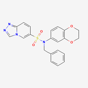 N-benzyl-N-(2,3-dihydro-1,4-benzodioxin-6-yl)-[1,2,4]triazolo[4,3-a]pyridine-6-sulfonamide is a complex organic compound that belongs to the class of sulfonamides. These compounds are known for their diverse biological activities and have been extensively studied for their potential therapeutic applications. The unique structure of this compound, which includes a triazolopyridine ring and a benzodioxin moiety, makes it a subject of interest in medicinal chemistry.