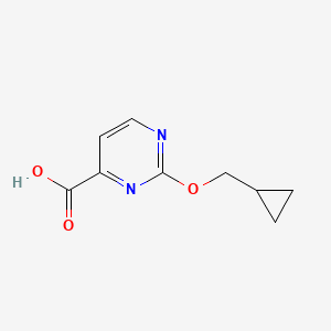 The synthesis of 2-(Cyclopropylmethoxy)pyrimidine-4-carboxylic acid typically involves the cyclization of appropriate precursors under controlled conditions. One common method involves the reaction of 2-chloropyrimidine with cyclopropylmethanol in the presence of a base, followed by carboxylation at the 4-position . The reaction conditions often include the use of solvents such as dimethylformamide (DMF) and catalysts like potassium carbonate (K2CO3) to facilitate the reaction .