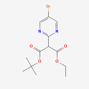 The synthesis of 1-tert-Butyl 3-ethyl 2-(5-bromopyrimidin-2-yl)malonate typically involves the reaction of tert-butyl malonate with 5-bromopyrimidine under specific conditions. The reaction is usually carried out in the presence of a base such as sodium hydride or potassium carbonate, and a suitable solvent like dimethylformamide (DMF) or tetrahydrofuran (THF). The reaction mixture is stirred at room temperature or slightly elevated temperatures until the desired product is formed .