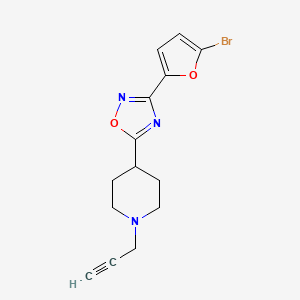 The synthesis of 4-[3-(5-Bromofuran-2-yl)-1,2,4-oxadiazol-5-yl]-1-(prop-2-yn-1-yl)piperidine typically involves multiple steps, starting from readily available starting materials. The key steps include the formation of the oxadiazole ring and the subsequent attachment of the bromofuran and piperidine moieties. Common reagents used in these reactions include bromine, furan, and various catalysts to facilitate the formation of the oxadiazole ring.