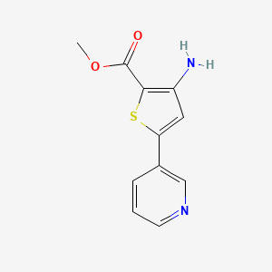 The mechanism of action of Methyl 3-amino-5-(pyridin-3-yl)thiophene-2-carboxylate involves its interaction with specific molecular targets and pathways. For instance, it may inhibit certain enzymes or receptors, leading to its observed biological effects . The exact molecular targets and pathways can vary depending on the specific application and the structure of the compound .