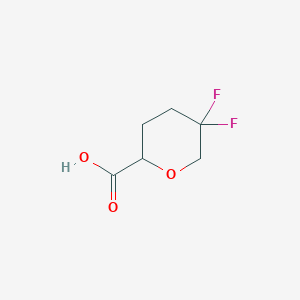 Uniqueness: 5,5-Difluorooxane-2-carboxylic acid is unique due to the presence of two fluorine atoms, which significantly influence its chemical properties. The fluorine atoms enhance the compound’s stability and reactivity, making it a valuable building block in various chemical syntheses and applications.
