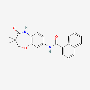 The synthesis of N-(3,3-dimethyl-4-oxo-2,3,4,5-tetrahydro-1,5-benzoxazepin-8-yl)naphthalene-1-carboxamide typically involves multi-step organic reactions One common method involves the reaction of anthranilic acid derivatives with appropriate reagents to form the benzoxazepine ringThe reaction conditions often require the use of catalysts, solvents, and controlled temperatures to ensure high yield and purity of the final product .