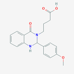 The synthesis of 4-[2-(4-methoxyphenyl)-4-oxo-1,4-dihydroquinazolin-3(2H)-yl]butanoic acid typically involves multiple steps. One common method starts with the preparation of the quinazolinone core, which can be achieved through the cyclization of anthranilic acid derivatives with appropriate aldehydes or ketones. The methoxyphenyl group is introduced via electrophilic aromatic substitution reactions. The final step involves the attachment of the butanoic acid moiety through esterification or amidation reactions.