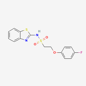 The mechanism of action of N-(benzo[d]thiazol-2-yl)-2-(4-fluorophenoxy)ethanesulfonamide involves its interaction with specific molecular targets and pathways. In biological systems, it can inhibit certain enzymes or receptors, leading to the modulation of cellular processes. For example, it may inhibit quorum sensing in bacteria, thereby reducing their virulence and ability to form biofilms . The exact molecular targets and pathways can vary depending on the specific application and context.