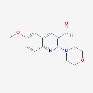 The mechanism of action of 6-methoxy-2-morpholinoquinoline-3-carbaldehyde involves its interaction with specific molecular targets and pathways. For example, it may exert its effects by binding to DNA or proteins, thereby modulating their function. The compound’s structural features, such as the quinoline ring system and functional groups, play a crucial role in its biological activity .