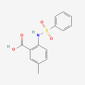 5-Methyl-2-[(phenylsulfonyl)amino]benzoic acid has the molecular formula and a molecular weight of approximately 291.32 g/mol. The compound features a methyl group at the 5-position of the benzoic acid moiety and a phenylsulfonyl group attached to the amino nitrogen at the 2-position. This specific arrangement contributes to its unique reactivity and biological properties.