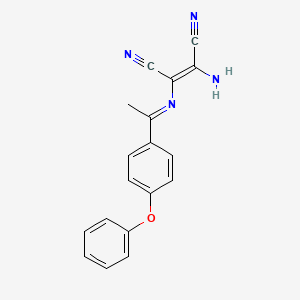 The mechanism by which (2Z)-2-amino-3-[(E)-[1-(4-phenoxyphenyl)ethylidene]amino]but-2-enedinitrile exerts its effects involves interactions with specific molecular targets. It may act by binding to enzymes or receptors, thereby modulating their activity. The pathways involved can include inhibition of enzyme activity or alteration of signal transduction processes .