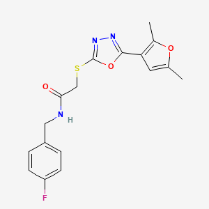 2-((5-(2,5-dimethylfuran-3-yl)-1,3,4-oxadiazol-2-yl)thio)-N-(4-fluorobenzyl)acetamide