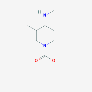 The mechanism of action of tert-butyl 3-methyl-4-(methylamino)piperidine-1-carboxylate involves its interaction with specific molecular targets in biological systems. The compound can act as an inhibitor or modulator of certain enzymes and receptors, affecting various biochemical pathways. The exact molecular targets and pathways depend on the specific application and the structure of the derivatives formed from this compound .
