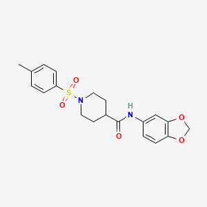 N-(1,3-Benzodioxol-5-yl)-1-[(4-methylphenyl)sulfonyl]piperidine-4-carboxamide is a synthetic small molecule featuring a piperidine-4-carboxamide core modified with a 1,3-benzodioxol-5-yl group and a 4-methylphenylsulfonyl substituent.