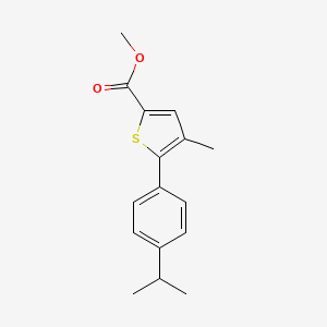 The mechanism of action of Methyl 4-methyl-5-[4-(propan-2-yl)phenyl]thiophene-2-carboxylate involves its interaction with specific molecular targets and pathways. Thiophene derivatives are known to modulate various biological pathways, including those involved in inflammation and cancer . The exact molecular targets and pathways depend on the specific biological activity being studied.