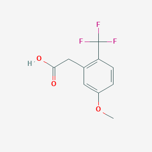 The synthesis of 2-(5-Methoxy-2-(trifluoromethyl)phenyl)acetic acid typically involves the introduction of the methoxy and trifluoromethyl groups onto a phenyl ring, followed by the attachment of the acetic acid moiety. One common method involves the use of a Friedel-Crafts acylation reaction, where a trifluoromethylbenzene derivative is reacted with an acyl chloride in the presence of a Lewis acid catalyst, such as aluminum chloride. The resulting product is then subjected to further reactions to introduce the methoxy group and the acetic acid moiety .