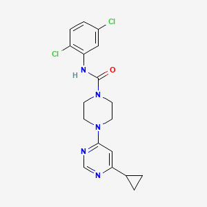 The mechanism of action of 4-(6-cyclopropylpyrimidin-4-yl)-N-(2,5-dichlorophenyl)piperazine-1-carboxamide involves its interaction with specific molecular targets, such as enzymes or receptors. This interaction can modulate various biochemical pathways, leading to the observed biological effects. For example, it may inhibit the activity of certain enzymes or block the binding of ligands to receptors, thereby altering cellular functions.