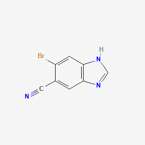 Synthetic Routes and Reaction Conditions: The synthesis of 6-Bromo-1H-benzo[d]imidazole-5-carbonitrile typically involves the cyclization of appropriate precursors under specific conditions. One common method involves the reaction of 4-bromo-1,2-phenylenediamine with cyanogen bromide under acidic conditions to form the desired product. The reaction is usually carried out in a solvent such as acetonitrile or dimethylformamide at elevated temperatures.