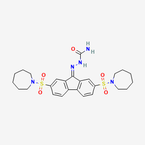 The mechanism of action of 2-(2,7-bis(azepan-1-ylsulfonyl)-9H-fluoren-9-ylidene)hydrazinecarboxamide involves its interaction with specific molecular targets, such as enzymes or receptors. The compound can inhibit enzyme activity by binding to the active site or allosteric sites, thereby