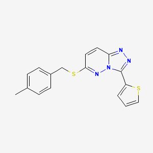 The mechanism of action of 6-((4-Methylbenzyl)thio)-3-(thiophen-2-yl)-[1,2,4]triazolo[4,3-b]pyridazine would depend on its specific application. In medicinal chemistry, it may interact with molecular targets such as enzymes, receptors, or nucleic acids, modulating their activity through binding or inhibition. The presence of the triazolopyridazine core and the thiophene group may facilitate interactions with hydrophobic pockets or aromatic residues in proteins.