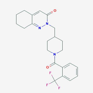 The compound 2-({1-[2-(Trifluoromethyl)benzoyl]piperidin-4-yl}methyl)-2,3,5,6,7,8-hexahydrocinnolin-3-one , identified by its CAS number 2097914-53-7 , is a complex organic molecule with potential biological activities. This article explores its biochemical properties, pharmacological effects, and relevant case studies.