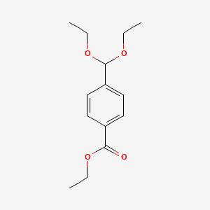 Ethyl 4-(diethoxymethyl)benzoate can be synthesized through the esterification of 4-(diethoxymethyl)benzoic acid with ethanol in the presence of an acid catalyst. The reaction typically involves refluxing the reactants in an organic solvent such as toluene or dichloromethane, with sulfuric acid or p-toluenesulfonic acid as the catalyst. The reaction mixture is then purified through distillation or recrystallization to obtain the desired product.
