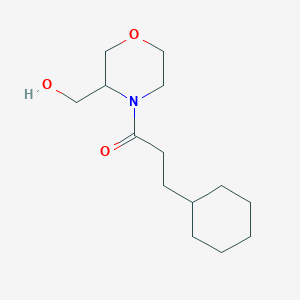The synthesis of 3-cyclohexyl-1-[3-(hydroxymethyl)morpholin-4-yl]propan-1-one involves several steps. One common method includes the reaction of cyclohexyl bromide with morpholine in the presence of a base to form 3-cyclohexylmorpholine. This intermediate is then reacted with formaldehyde and a suitable catalyst to yield the final product .