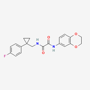 InChI=1S/C20H19FN2O4/c21-14-3-1-13(2-4-14)20(7-8-20)12-22-18(24)19(25)23-15-5-6-16-17(11-15)27-10-9-26-16/h1-6,11H,7-10,12H2,(H,22,24)(H,23,25) | |