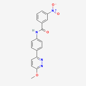 N-[4-(6-methoxypyridazin-3-yl)phenyl]-3-nitrobenzamide is a complex organic compound that has gained attention in the field of medicinal chemistry for its potential biological activities. This compound features a unique combination of functional groups, including a methoxy-substituted pyridazine ring, a phenyl group, and a nitrobenzamide moiety. These structural characteristics may contribute to its diverse pharmacological properties.