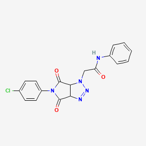 The mechanism of action of 2-[5-(4-chlorophenyl)-4,6-dioxo-1H,3aH,4H,5H,6H,6aH-pyrrolo[3,4-d][1,2,3]triazol-1-yl]-N-phenylacetamide involves its interaction with specific molecular targets and pathways. The compound can inhibit certain enzymes or receptors, leading to various biological effects. For example, it may inhibit the activity of enzymes involved in cell proliferation, thereby exhibiting anticancer properties . Additionally, it can modulate inflammatory pathways, making it a potential anti-inflammatory agent .