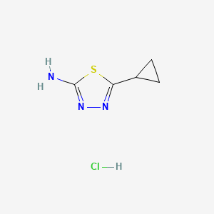The mechanism of action of 5-Cyclopropyl-1,3,4-thiadiazol-2-amine hydrochloride involves its interaction with specific molecular targets. The compound can inhibit certain enzymes or receptors, leading to its biological effects. For example, it may inhibit bacterial enzymes, leading to antimicrobial activity. The exact molecular pathways and targets can vary depending on the specific application and biological context .