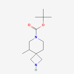 tert-Butyl 5-methyl-2,7-diazaspiro[3.5]nonane-7-carboxylate is a spirocyclic amine derivative widely used in pharmaceutical research as a building block for drug discovery. Its structure features a spiro[3.5]nonane core with two nitrogen atoms at positions 2 and 7, a methyl substituent at position 5, and a tert-butyloxycarbonyl (Boc) protecting group at the 7-position (Fig. 1). This compound is valued for its conformational rigidity and versatility in synthesizing bioactive molecules .