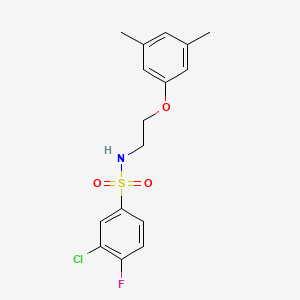 The mechanism of action of 3-chloro-N-(2-(3,5-dimethylphenoxy)ethyl)-4-fluorobenzenesulfonamide involves its interaction with specific molecular targets, such as enzymes or receptors. The compound may inhibit enzyme activity by binding to the active site or modulate receptor function by interacting with binding sites. The exact pathways and targets depend on the specific application and context of use.