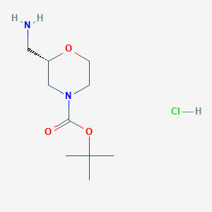 InChI=1S/C10H20N2O3.ClH/c1-10(2,3)15-9(13)12-4-5-14-8(6-11)7-12;/h8H,4-7,11H2,1-3H3;1H/t8-;/m0./s1 | |