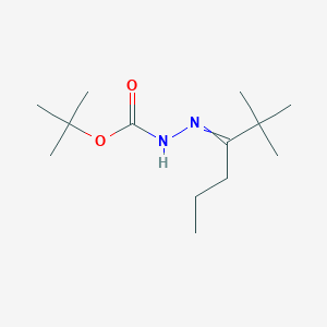 The synthesis of (Z)-tert-Butyl 2-(2,2-dimethylhexan-3-ylidene)hydrazinecarboxylate typically involves multiple steps. One common synthetic route includes the reaction of tert-butyl hydrazinecarboxylate with 2,2-dimethylhexan-3-one under specific conditions to form the desired product. The reaction conditions often require the use of a base, such as sodium hydride, and an appropriate solvent, like tetrahydrofuran, to facilitate the reaction. Industrial production methods may involve optimization of these conditions to achieve higher yields and purity.