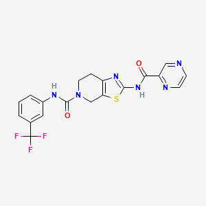 The synthesis of 2-(pyrazine-2-carboxamido)-N-(3-(trifluoromethyl)phenyl)-6,7-dihydrothiazolo[5,4-c]pyridine-5(4H)-carboxamide typically involves multi-step organic synthesis. A common synthetic route includes:
