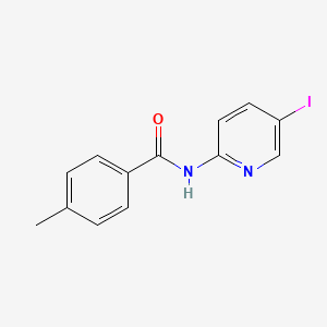 The mechanism of action of Benzamide, N-(5-iodo-2-pyridinyl)-4-methyl- depends on its application. In medicinal chemistry, it may interact with specific enzymes or receptors, modulating their activity. The pyridine ring can participate in π-π interactions or hydrogen bonding, while the benzamide group can form hydrogen bonds with biological targets.