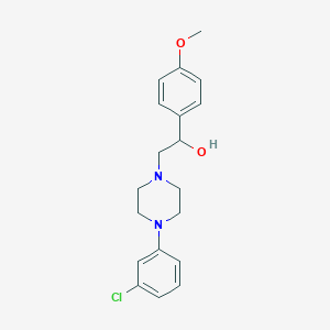 2-[4-(3-Chlorophenyl)piperazin-1-yl]-1-(4-methoxyphenyl)ethanol is a compound of interest in medicinal chemistry, particularly due to its structural features that suggest potential biological activities. This compound contains a piperazine moiety, which is often associated with various pharmacological effects, including antipsychotic, antidepressant, and antimicrobial properties. This article explores the biological activity of this compound, focusing on its synthesis, mechanisms of action, and relevant case studies.