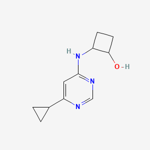 2-[(6-Cyclopropylpyrimidin-4-yl)amino]cyclobutan-1-ol is a synthetic compound that has garnered attention in the fields of medicinal chemistry and pharmacology due to its unique structural features and potential biological activities. This compound combines a cyclopropylpyrimidine moiety with a cyclobutanol ring, which may confer distinct pharmacological properties.