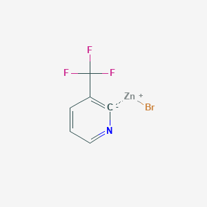 3-Trifluoromethyl-2-pyridylzinc bromide functions as a potent nucleophile, participating in reactions where the 2-pyridyl ring attacks an electron-deficient center. The carbon-zinc bond is polarized, with the carbon atom bearing a partial negative charge, making it reactive towards electrophiles. The presence of the strongly electron-withdrawing trifluoromethyl group at the 3-position significantly influences the electronic properties and, consequently, the reactivity of the reagent. This substituent enhances the stability of the organozinc species while modulating its nucleophilicity.