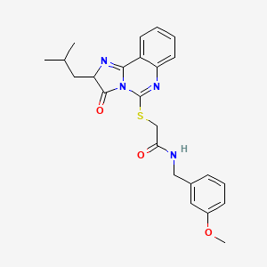 2-((2-isobutyl-3-oxo-2,3-dihydroimidazo[1,2-c]quinazolin-5-yl)thio)-N-(3-methoxybenzyl)acetamide is a complex organic compound notable for its potential biological activities, particularly in the field of medicinal chemistry. This compound is characterized by a fused ring structure and multiple functional groups, which contribute to its pharmacological properties. The molecular formula of this compound is C₁₈H₁₉N₄O₃S, with a molecular weight of approximately 450.56 g/mol.