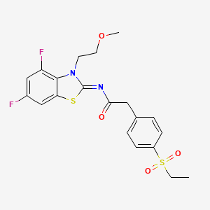 (E)-N-(4,6-difluoro-3-(2-methoxyethyl)benzo[d]thiazol-2(3H)-ylidene)-2-(4-(ethylsulfonyl)phenyl)acetamide is a complex organic compound of significant interest in medicinal chemistry due to its diverse biological activities. This compound, characterized by its unique structural features, has been the focus of various studies aimed at elucidating its potential therapeutic applications.