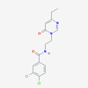 The mechanism of action of 3,4-dichloro-N-(2-(4-ethyl-6-oxopyrimidin-1(6H)-yl)ethyl)benzamide would depend on its specific application. In a biological context, it could interact with enzymes or receptors, modulating their activity. The dichloro and pyrimidinyl groups may facilitate binding to specific molecular targets, influencing pathways involved in disease processes.